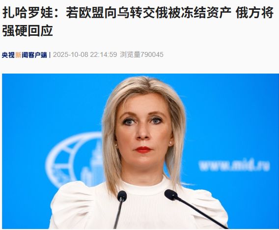 據(jù)央視新聞,當(dāng)?shù)貢r(shí)間10月8日,俄羅斯外交部發(fā)言人扎哈羅娃表示,如果歐盟向?yàn)蹩颂m轉(zhuǎn)交被凍結(jié)的俄羅斯資產(chǎn),俄方將進(jìn)行強(qiáng)硬回應(yīng)。
