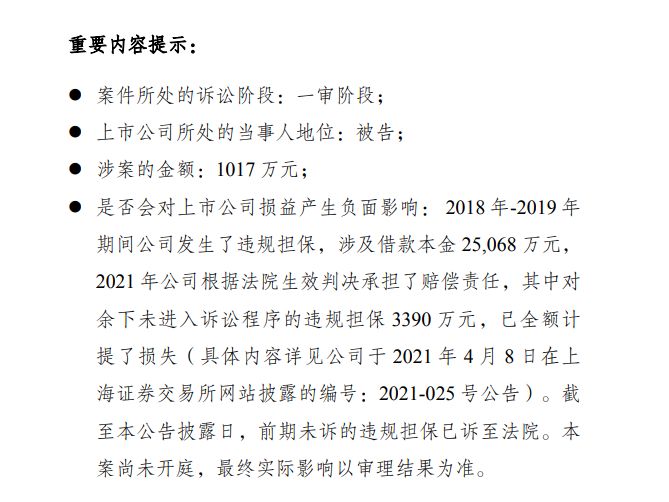 威龍葡萄酒指出,2018年~2019年公司發(fā)生了違規(guī)擔(dān)保,涉及借款本金約2.51億元。2021年,公司根據(jù)法院生效判決承擔(dān)了賠償責(zé)任,其中對余下未進(jìn)入訴訟程序的違規(guī)擔(dān)保3390萬元,已全額計提了損失。截至公告披露日,前期未訴的違規(guī)擔(dān)保已訴至法院。本案尚未開庭,最終實際影響以審理結(jié)果為準(zhǔn)。