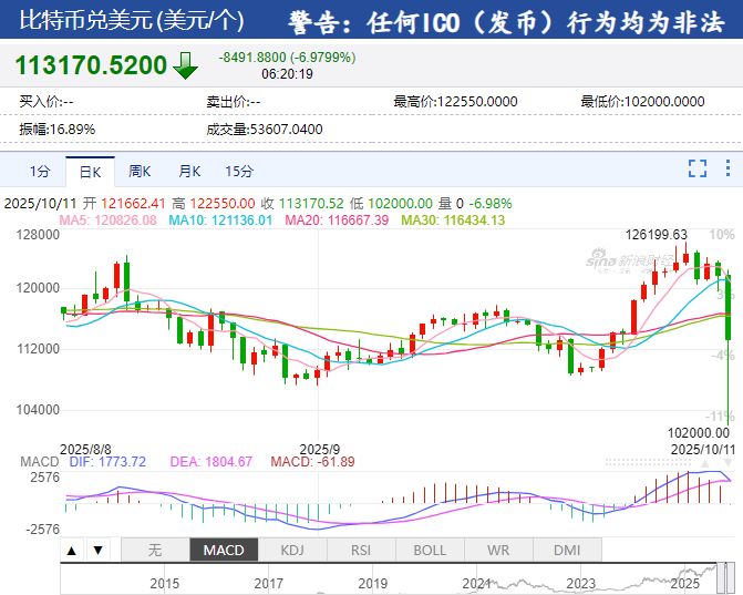 比特幣一度跌破110000美元,過去24小時內(nèi)下跌9.16%。