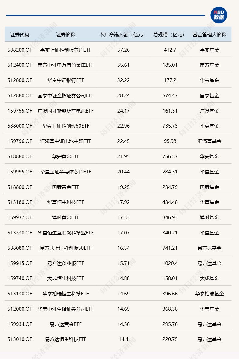截至10月14日,本月資金凈流入額居前20的ETF名單如下: