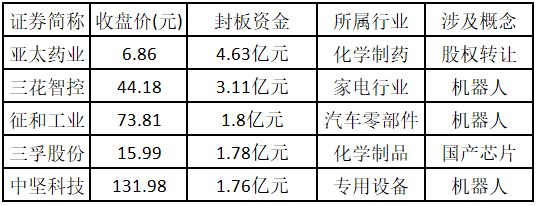 從封板資金來看,今日漲停板個(gè)股中,封板資金排名前5的個(gè)股包括亞太藥業(yè)、三花智控、征和工業(yè)、三孚股份、中堅(jiān)科技。歡迎大家關(guān)注微信公眾號(hào)“道達(dá)號(hào)”,其“道達(dá)漲停復(fù)盤”欄目為大家解讀。