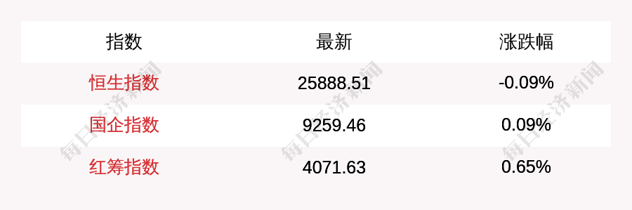 每經(jīng)AI快訊:北京時間10月16日16:00,恒生指數(shù)收盤下跌22.09點,跌幅為0.09%,報收25888.51點;國企指數(shù)收盤上漲8.55點,漲幅為0.09%,報收9259.46點;紅籌指數(shù)收盤上漲26.13點,漲幅為0.65%,報收4071.63點。南向資金當日凈流入158.22億港元。