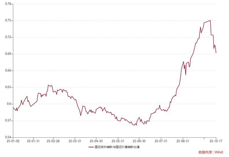 此外,自十月以來,市場風(fēng)格正經(jīng)歷由成長向價值的切換。根據(jù)國證成長-價值指數(shù)的跟蹤數(shù)據(jù),成長風(fēng)格相對優(yōu)勢明顯減弱,而價值風(fēng)格的上行趨勢逐步確立,風(fēng)格切換至價值的概率持續(xù)上升。結(jié)合8月以來已經(jīng)確認(rèn)的大小盤風(fēng)格轉(zhuǎn)變,市場整體正在從中小盤成長板塊向大盤價值板塊過渡。前期漲幅較高、獲利盤集中的成長與科技板塊在風(fēng)格切換階段出現(xiàn)階段性承壓,指數(shù)亦因高權(quán)重板塊的調(diào)整而同步回調(diào)。