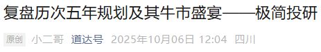 也就是說,10月底這個窗口期,我們可能會看到“十五五”規(guī)劃的大概內(nèi)容。這方面,我在國慶假期里談過,詳見《復(fù)盤歷次五年規(guī)劃及其牛市盛宴》。