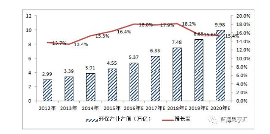 1、環(huán)保產(chǎn)業(yè)高速發(fā)展,產(chǎn)業(yè)規(guī)模將超10萬(wàn)億 近年來(lái),環(huán)保產(chǎn)業(yè)一直保持15%以上增長(zhǎng),從2012年的2.99萬(wàn)億增加到2015年的4.55萬(wàn)億,2016年超過(guò)5萬(wàn)億。 隨著“十三五”期間我國(guó)生態(tài)文明建設(shè)的推進(jìn)以及“美麗中國(guó)”戰(zhàn)略的實(shí)施,我們預(yù)計(jì)2017—2020年我國(guó)節(jié)能環(huán)保產(chǎn)業(yè)將保持18%左右的增速,到2020年前后,環(huán)保產(chǎn)業(yè)規(guī)模將接近10萬(wàn)億。 屆時(shí),環(huán)保產(chǎn)業(yè)占GDP的比重將從現(xiàn)在的7%提升到超過(guò)10%。